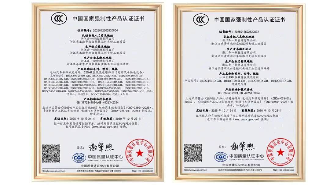 随着新能源汽车加速普及,充电安全成为用户核心关切的问题,奔亿始终秉持用“专业兑现安全承诺”。10月24日,奔亿自主研发的充电桩(构建包含低功率至高功率级的完整充电矩阵),已通过国家最新3C强制认证(包括GB 39752-2024、GB 44263-2024两份标准),成为了浙江首批通过权威3C认证的充电桩品牌,完美诠释了以“硬核实力”提前定义行业安全新峰值!