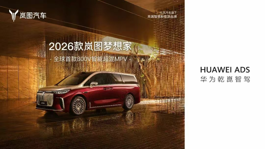 岚图梦想家作为领先一代的高端新能源MPV,搭载华为乾崑智驾ADS3.0及鸿蒙座舱的MPV,拥有1411kmCLTC同级最长综合续航,同级唯一百万级魔毯空气悬架+CDC,同级唯一中国新能源MPV C-NCAP五星安全认证,全系标配智能电动四驱,行业首创SPA级零重力头等舱座椅,MPV品类最大的13L双门冷暖冰箱,智能多屏互动等行业领先的全方位旗舰实力,带来更豪华、更舒适、更智能、更安全的驾乘体验,成为商务出行和家庭用车的绿色标杆。