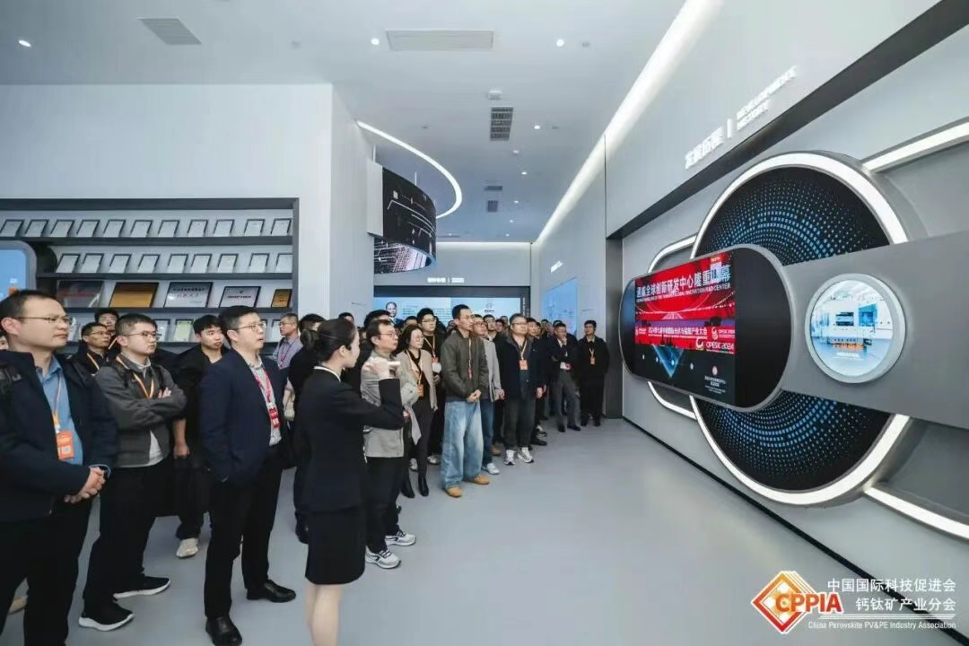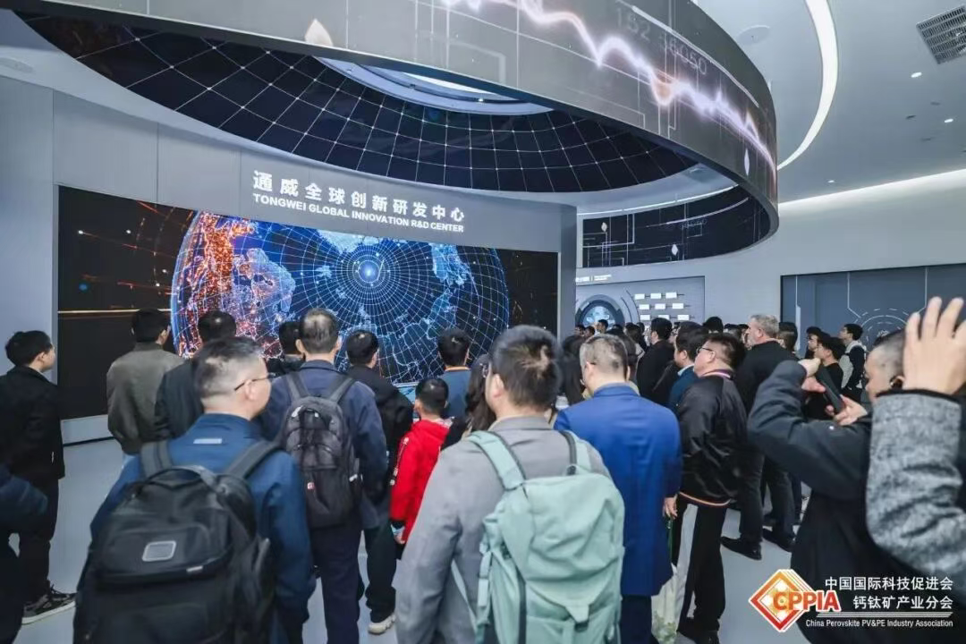 期间,与会嘉宾前往通威全球创新研发中心,参观考察行业首条全自动兆瓦级钙钛矿-晶硅叠层电池试验线。这不仅是通威该条中试线建成后的“首秀”,更是行业内近距离观察顶尖企业量产级钙钛矿叠层技术的珍贵窗口。各位嘉宾频频驻足交流,与通威研发团队展开深度探讨,为行业技术优化积累了宝贵的参考。