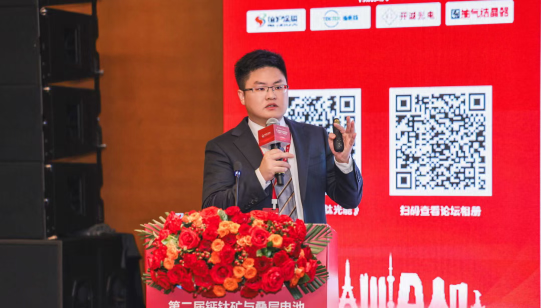 通威股份光伏技术部主任工程师张一峰作《全尺寸钙钛矿晶硅叠层电池量产技术瓶颈和产业化进展》报告。