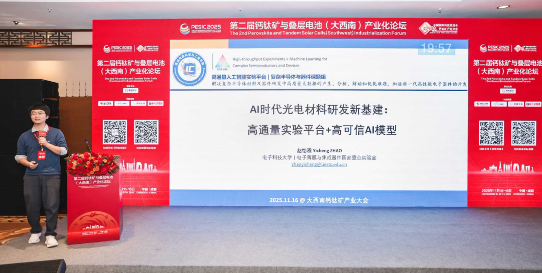 电子科技大学教授、博士生导师,高熵科技首席技术顾问赵怡程作《AI时代光伏材料研发新基建——高通量实验平台与高可信AI模型》报告。