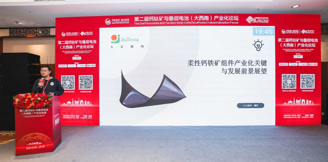 大正(江苏)微纳科技有限公司常务副总经理虞旺作《柔性钙钛矿组件产业化关键与发展前景展望》报告。
