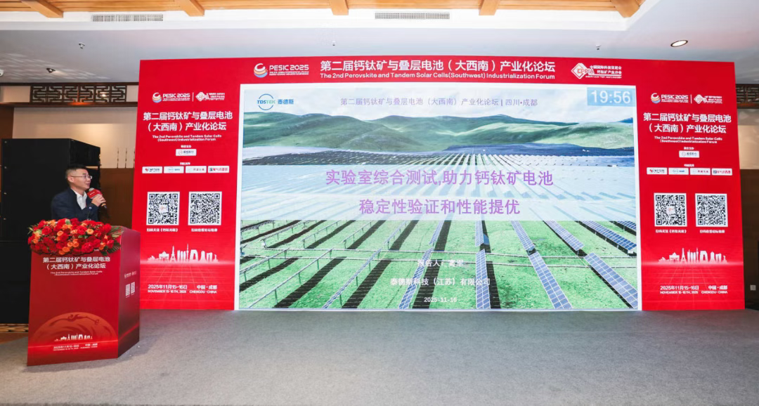 报告介绍,钙钛矿电池材料在光照、温湿度变化、氧气暴露及偏压等环境条件下易表现出不稳定性,导致器件性能出现较明显衰减。因此,选择科学合理的测试方法与适配的测试装备尤为关键,同时上下游企业需加强技术交流,加快数据验证与实验方法的优化推进。泰德斯作为领先的测试设备制造商,在钙钛矿电池领域已构建起完备的测试设备解决方案,并开展了深入的测试方法研究,可为行业提供有力支撑。