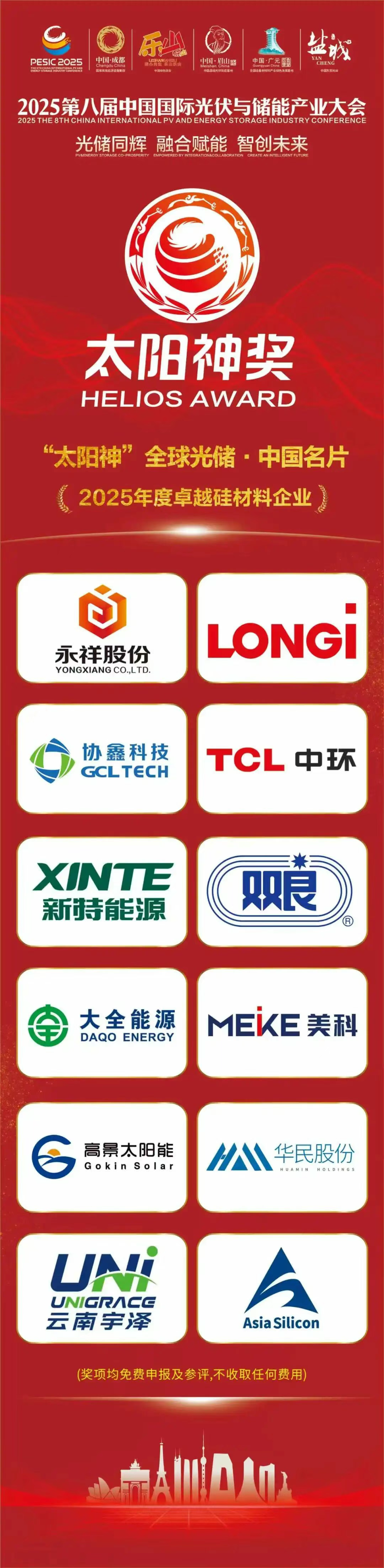 11月17-20日,2025第八届中国国际光伏与储能产业大会成功举行。国家、省、市各级重要领导、全球领袖企业家、顶尖专家学者等汇聚一堂,聚焦“双碳”背景下,光伏与储能品牌的新技术、新成果、新发展。作为大会重磅环节之一,在11月18日举行的2025第八届中国国际光伏与储能产业大会颁奖盛典暨“眉山·中国晶硅光伏制造基地”之夜期间,“太阳神”全球光储·中国名片系列奖项隆重揭晓。各项大奖现场隆重颁发,激励全体光储人无畏挑战,勇往直前,推动光储产业绿色、可持续发展,为全球清洁能源事业作出更大贡献。