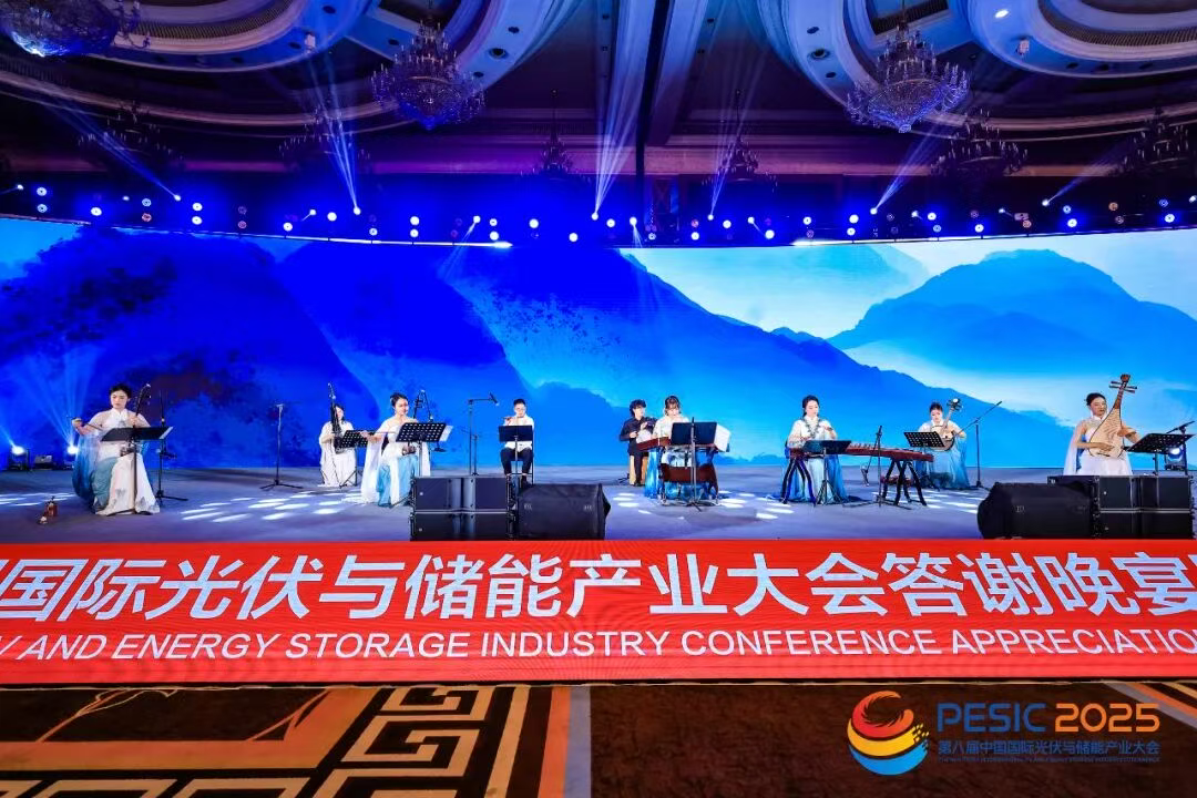 11月17日至20日,2025第八届中国国际光伏与储能产业大会在成都世纪城新国际会展中心成功举行。一场盛会的圆满举行,离不开每一位合作伙伴的鼎力支持。11月19日,在2025第八届中国国际光伏与储能产业大会答谢晚宴暨“盐城·中国东部光谷”之夜上,乐山师范学院音乐学院精心组织的90余人师生演出团队,以艺术为媒,为这场全球前三的国际光储盛会注入了温暖而强劲的文化力量。音乐学院副院长吴映春作为特邀嘉宾出席答谢晚宴。