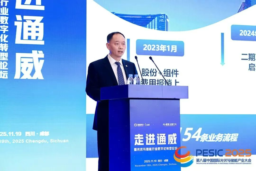 11月19日,在2025第八届中国国际光伏与储能产业大会期间,通威股份携手金蝶举办了以“AI+管理 成就不凡”为主题的“走进通威暨光伏与储能行业数字化转型论坛”,全面展示了通威股份与金蝶深度协作,共同推进数智化升级的探索实践和丰硕成果,为光伏与储能企业提供了可参考、可借鉴的转型范本,为行业突破转型瓶颈、迈向高质量发展注入强劲动力。