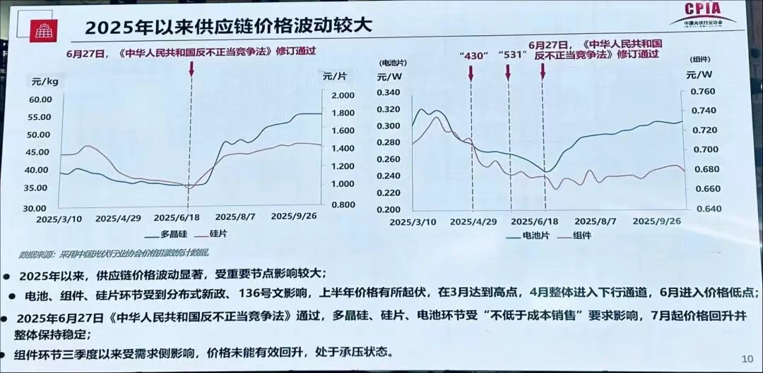 在王勃华看来,数据的变化对于当前产能过剩的光伏产业而言,是一种积极的信号。供应链价格方面,整体处于止跌状态,但受重要节点影响,全年波动较大。