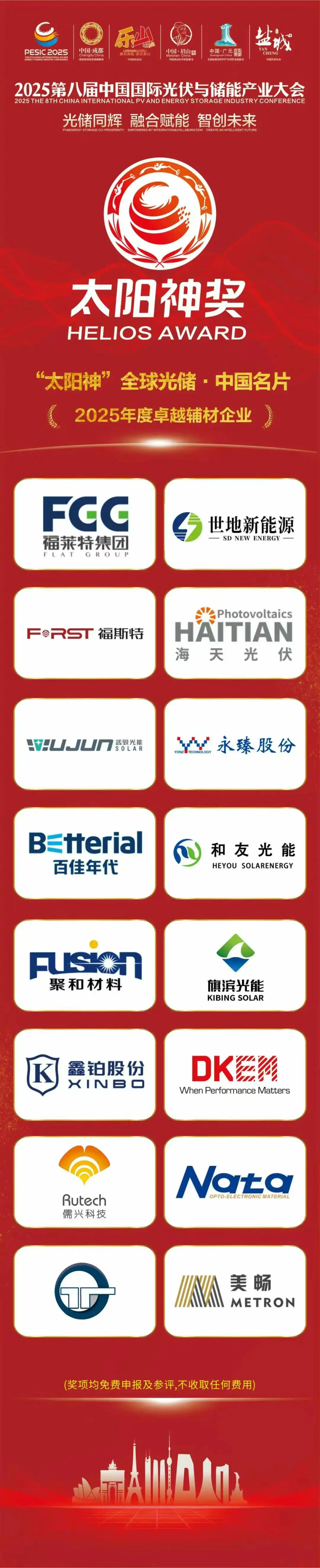 11月17-20日,2025第八届中国国际光伏与储能产业大会成功举行。国家、省、市各级重要领导、全球领袖企业家、顶尖专家学者等汇聚一堂,聚焦“双碳”背景下,光伏与储能品牌的新技术、新成果、新发展。作为大会重磅环节之一,在11月18日举行的2025第八届中国国际光伏与储能产业大会颁奖盛典暨“眉山·中国晶硅光伏制造基地”之夜期间,“太阳神”全球光储·中国名片系列奖项隆重揭晓。各项大奖现场隆重颁发,激励全体光储人无畏挑战,勇往直前,推动光储产业绿色、可持续发展,为全球清洁能源事业作出更大贡献。