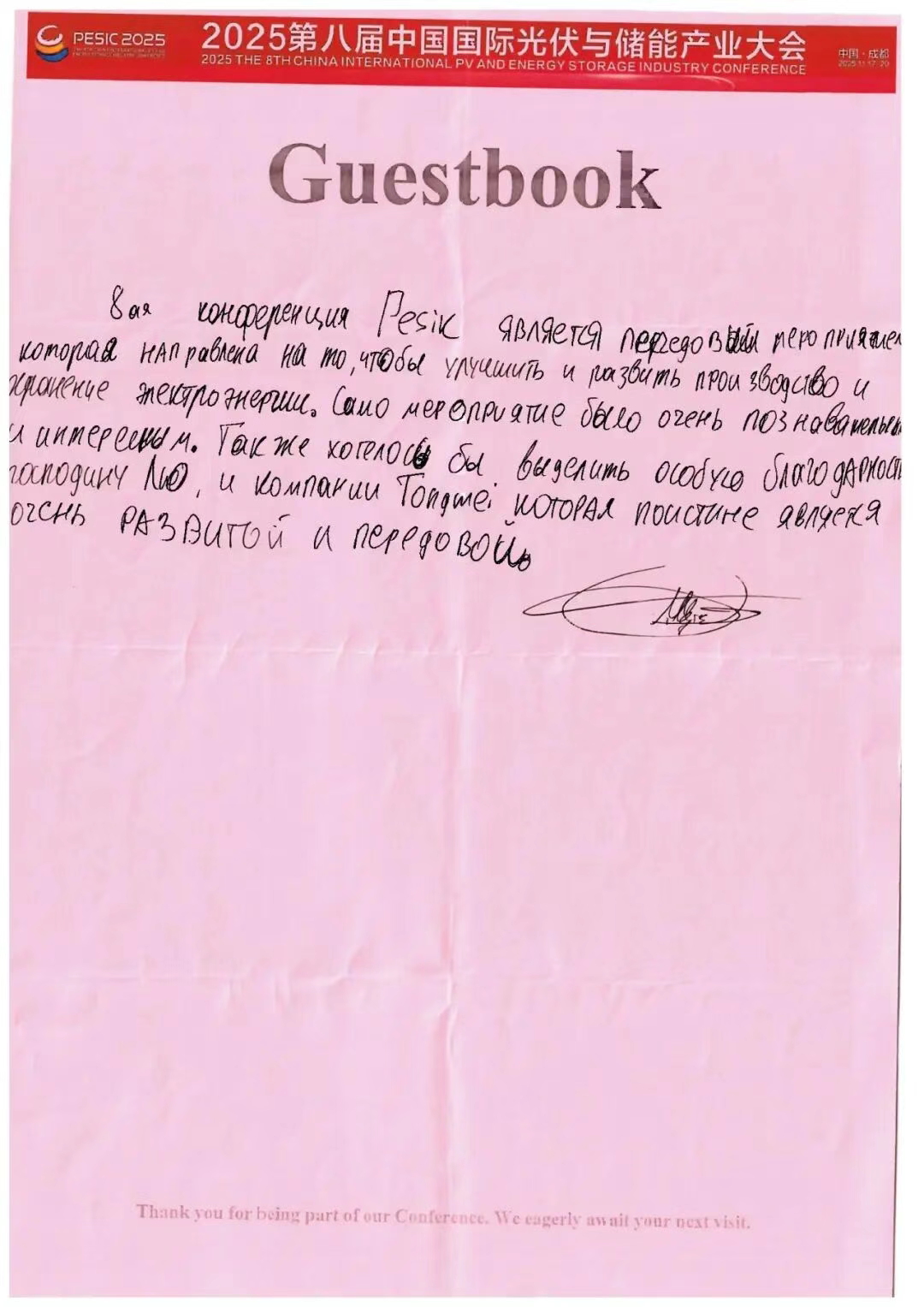 大会圆满落幕后,多位国际嘉宾对大会的专业水准、国际影响力及行业价值给予高度评价,赞赏中国光伏储能产业为全球能源转型作出的卓越贡献。