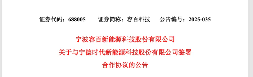 据内容显示,宁波容百新能源科技股份有限公司(下称“容百科技”或“公司”)与宁德时代新能源科技股份有限公司(下称“宁德时代”或“该客户”) 于近日签署了《合作协议》。