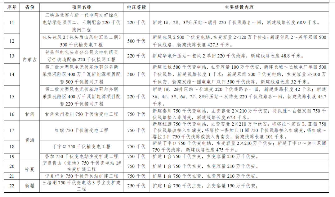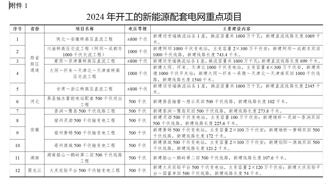 1. 2024年开工的新能源配套电网重点项目