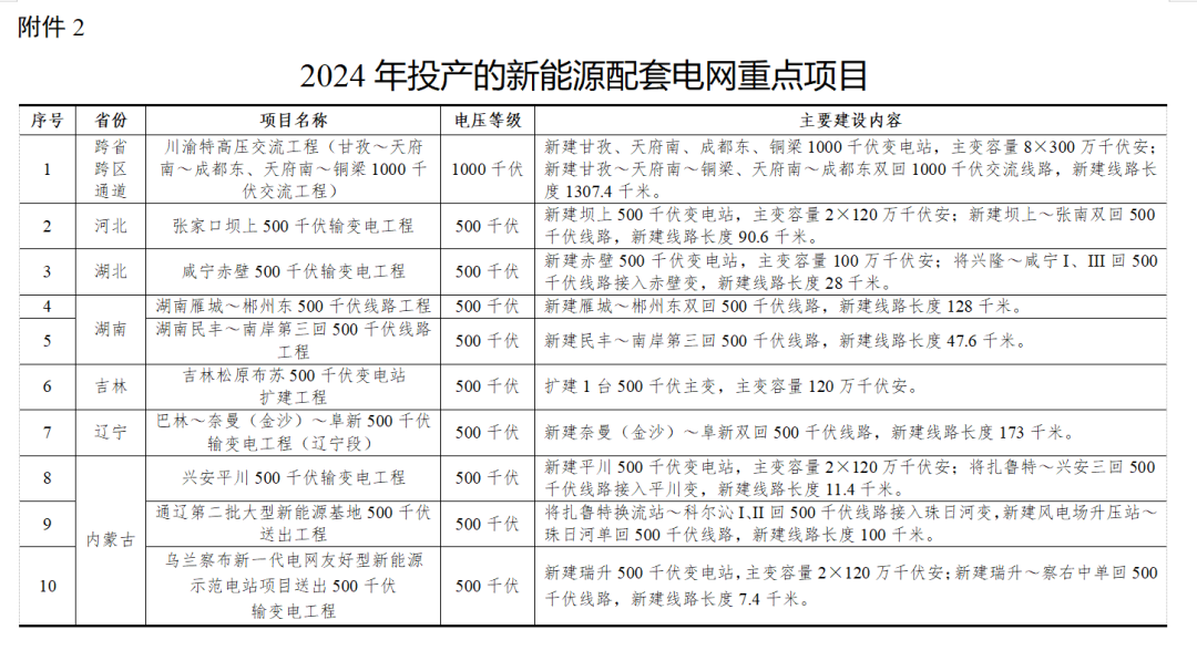 2. 2024年投产的新能源配套电网重点项目