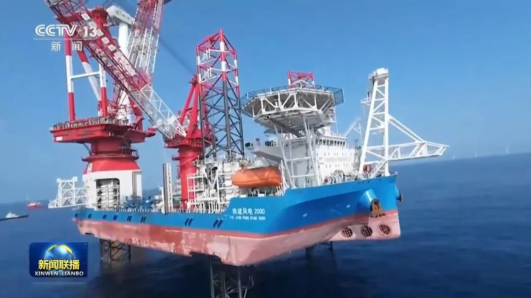 总台央视记者 刘柏煊:全球最大输送容量海上风电项目,现在进入开春后的首个集中施工期,8艘风机安装船在同步作业,超过120米长的巨型叶片,在百米高空中进行吊装。