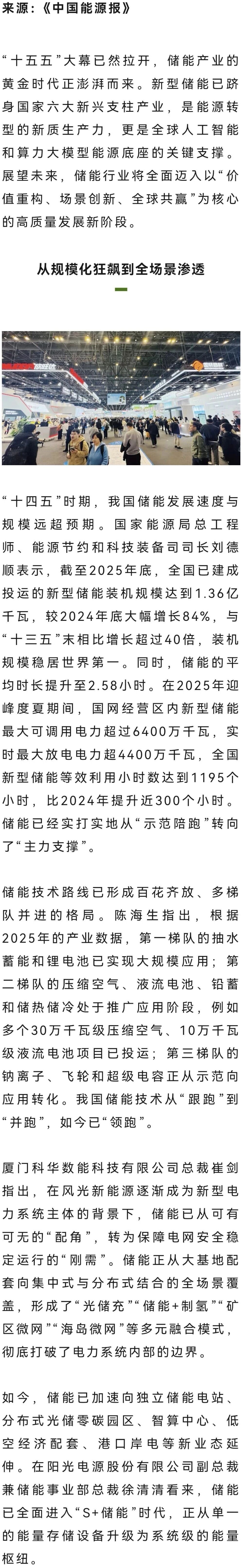 《中国能源报》丨新型储能迎来黄金时代